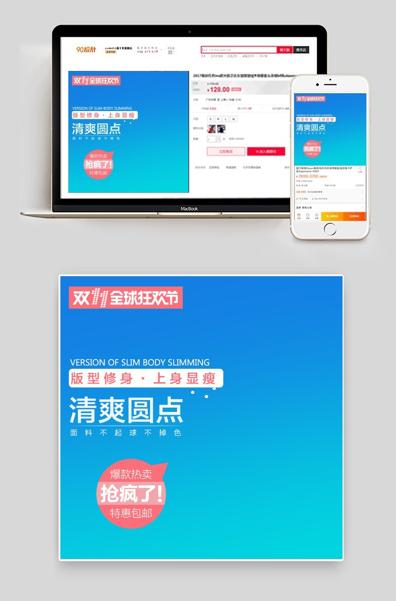 双十一 蓝色背景 渐变蓝色 简洁 时尚 小清新 清爽 特惠 包邮 女装 主图 直通车 psd模板