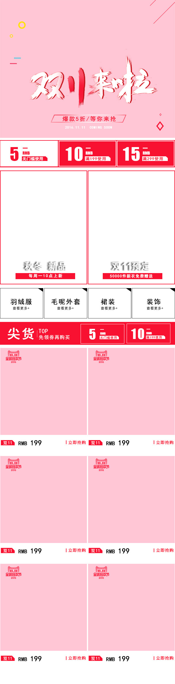 粉色甜美风双十一女装手机端首页