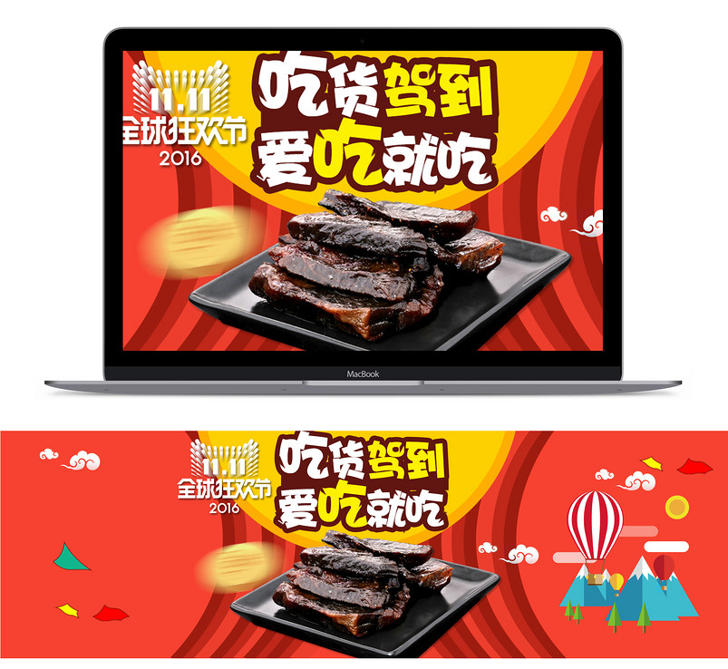 食品双11海报 双11海报 全屏海报 活动海报 双11活动海报 电脑端海报 双11食品海报吃货海报psd源文件