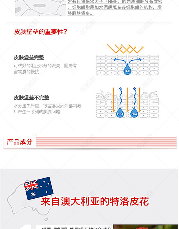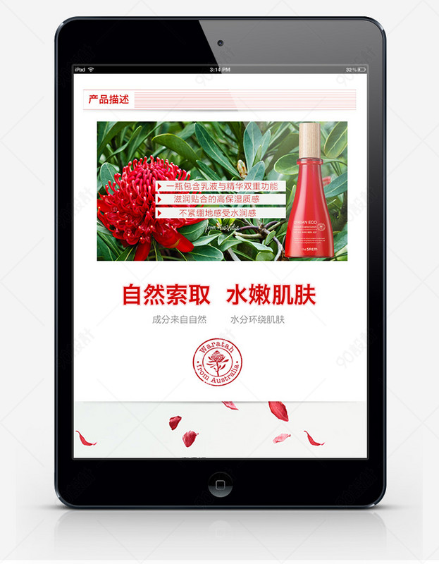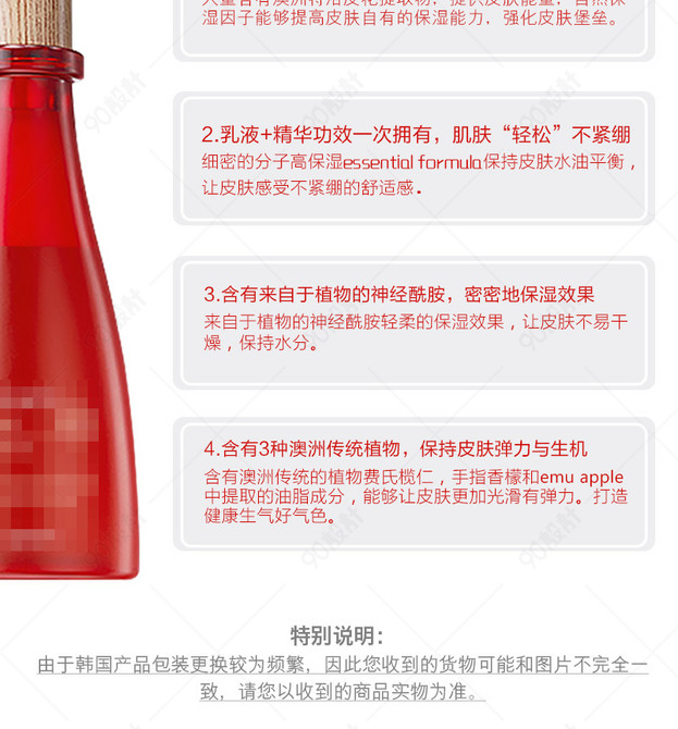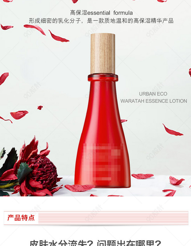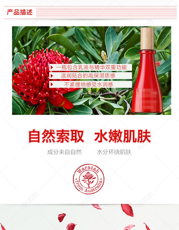 简约 自然 水乳 乳液 高保湿 护肤品 补水保湿 妆用品 红色植物精华 详情页psd分层模板