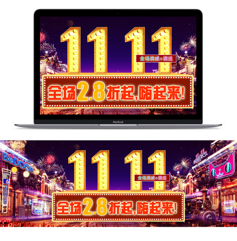 双11化妆品霓虹灯特效字体淘宝天猫PSD