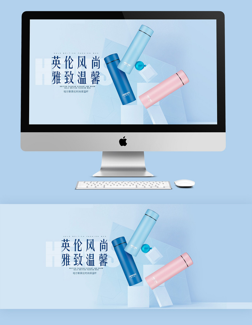 淡蓝色 简约 清爽风 保温杯海报 水杯 焖煮杯 玻璃杯 海报 模板 PSD