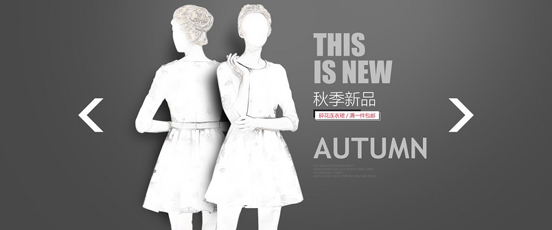 时尚灰色背景 秋季新品 全屏海报psd 天猫淘宝 女装海报 女装钻展 秋季新品碎花连衣裙女装 PSD模板 分层稿