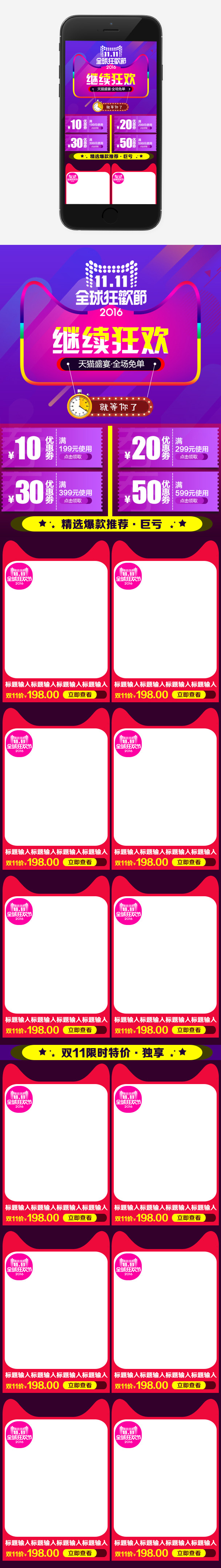 炫彩风双十一女装无线端首页模板PSD