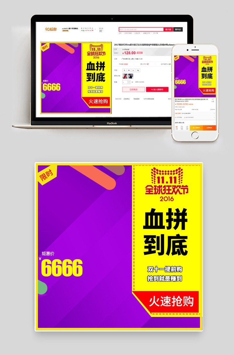双十一血拼 主图 直通车 紫色 黄色 拼色背景 限时 钜惠价 血拼 全球狂欢节 火速抢购 通用模板 促销主图