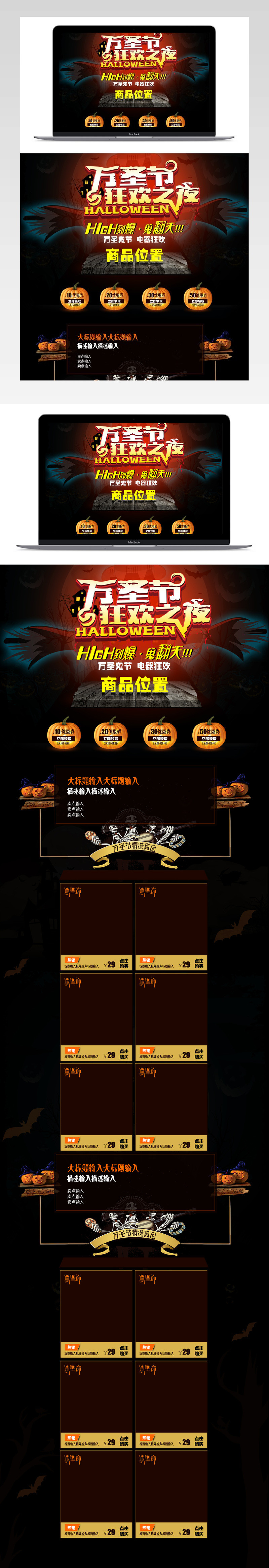 炫酷风万圣节生活电器促销店铺首页PSD模版