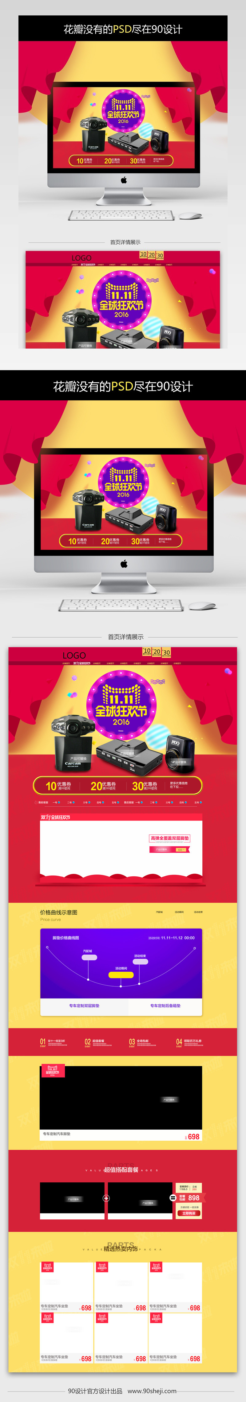 淘宝 全球狂欢节 红色喜庆 汽车配件用品 车载电器 脚垫 汽车后备箱垫 汽车坐垫 红色背景 黄色背景 双十一