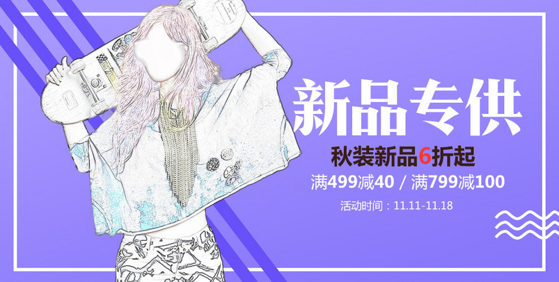 紫色背景 双十一 几何元素 新品专供 狂欢节 双11 女装通用模板 时尚 简约 大气 唯美 清新 psd模版 女装 首页海报 淘宝 天猫 促销 热卖