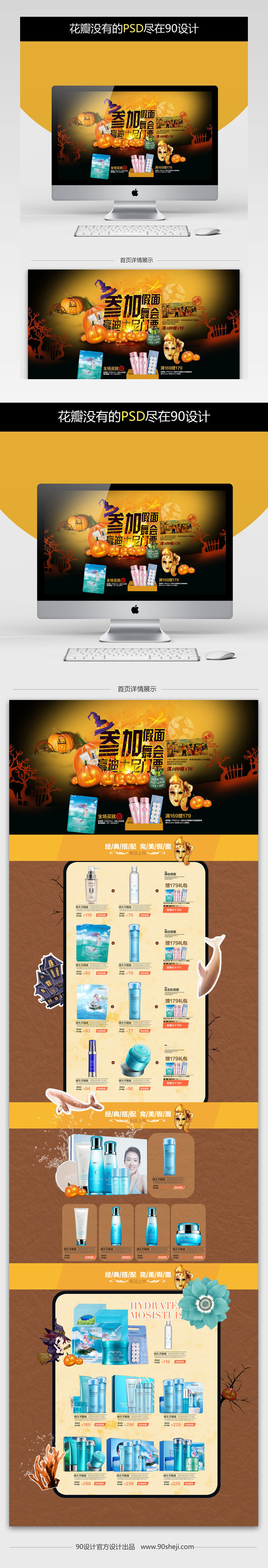 炫酷风万圣节美妆护肤品店铺首页PSD模版