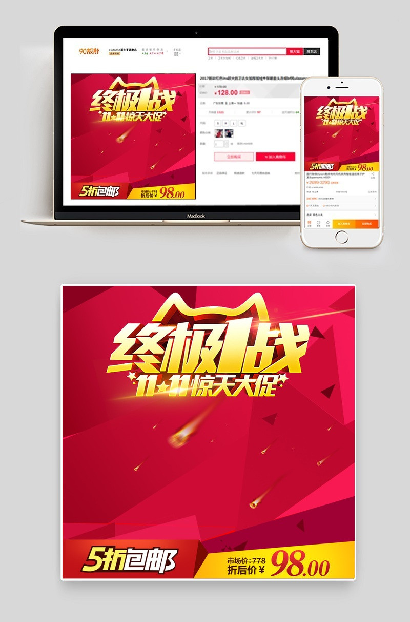 淘宝天猫双11双十一电器直通车主图PSD模板