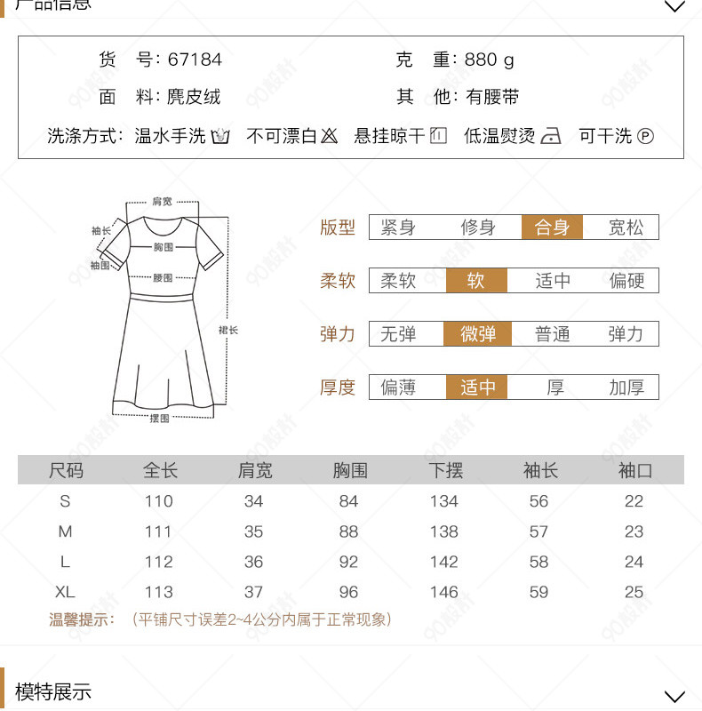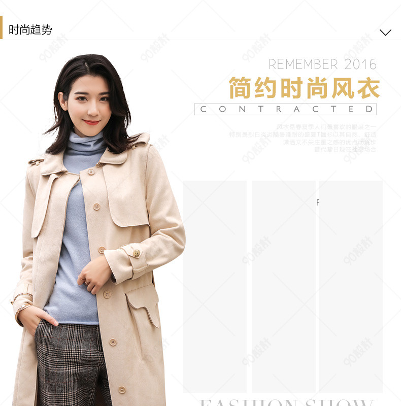 天猫淘宝 杂志风 简约时尚 详情页 女装详情页 时尚风衣女装详情页 女装尺码表模板 女装面料说明