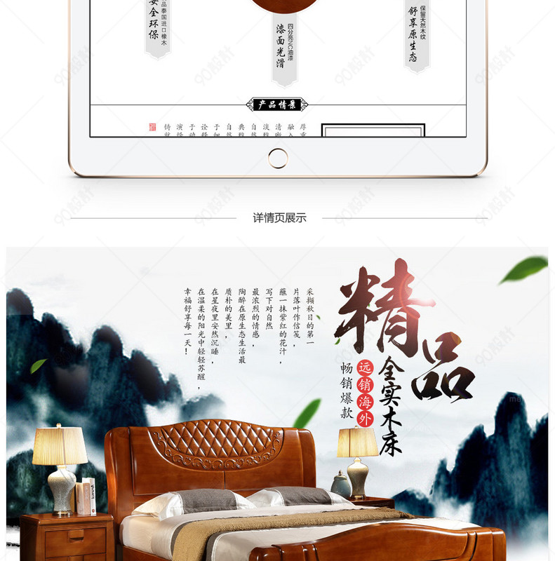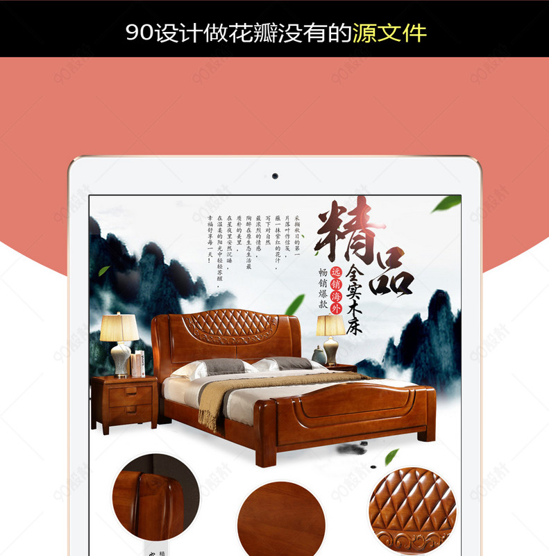 90设计提供京东中式实木床psd详情稿设计素材下载,高清PSD格式。【通用】多类目可用,产品、模特均可替换。【PSD】精细分层,贴好片。【设计】由90设计师独家设计。点击右侧免费下载按钮可进行京东中式实木床psd详情稿淘宝设计素材高速下载。