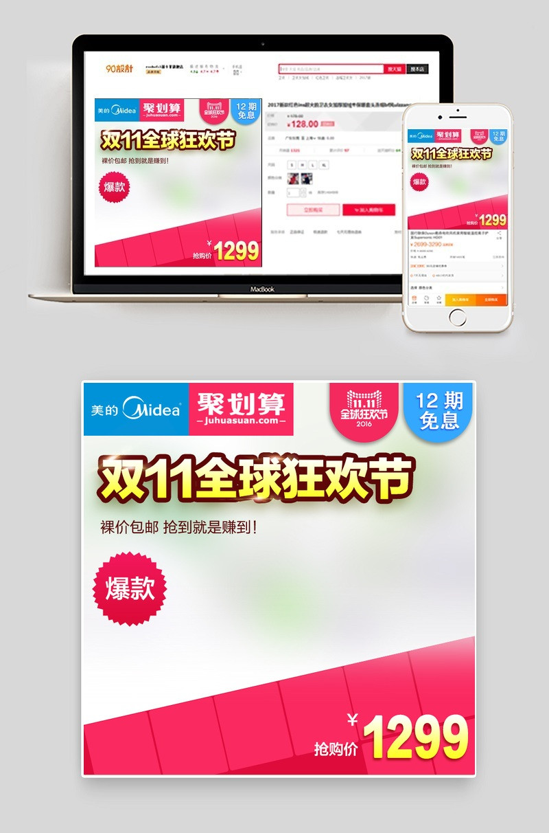 双十一 浅灰色背景 简约 裸价包邮 爆款 聚划算 抢购价 通用模板 主图 直通车 12期免息