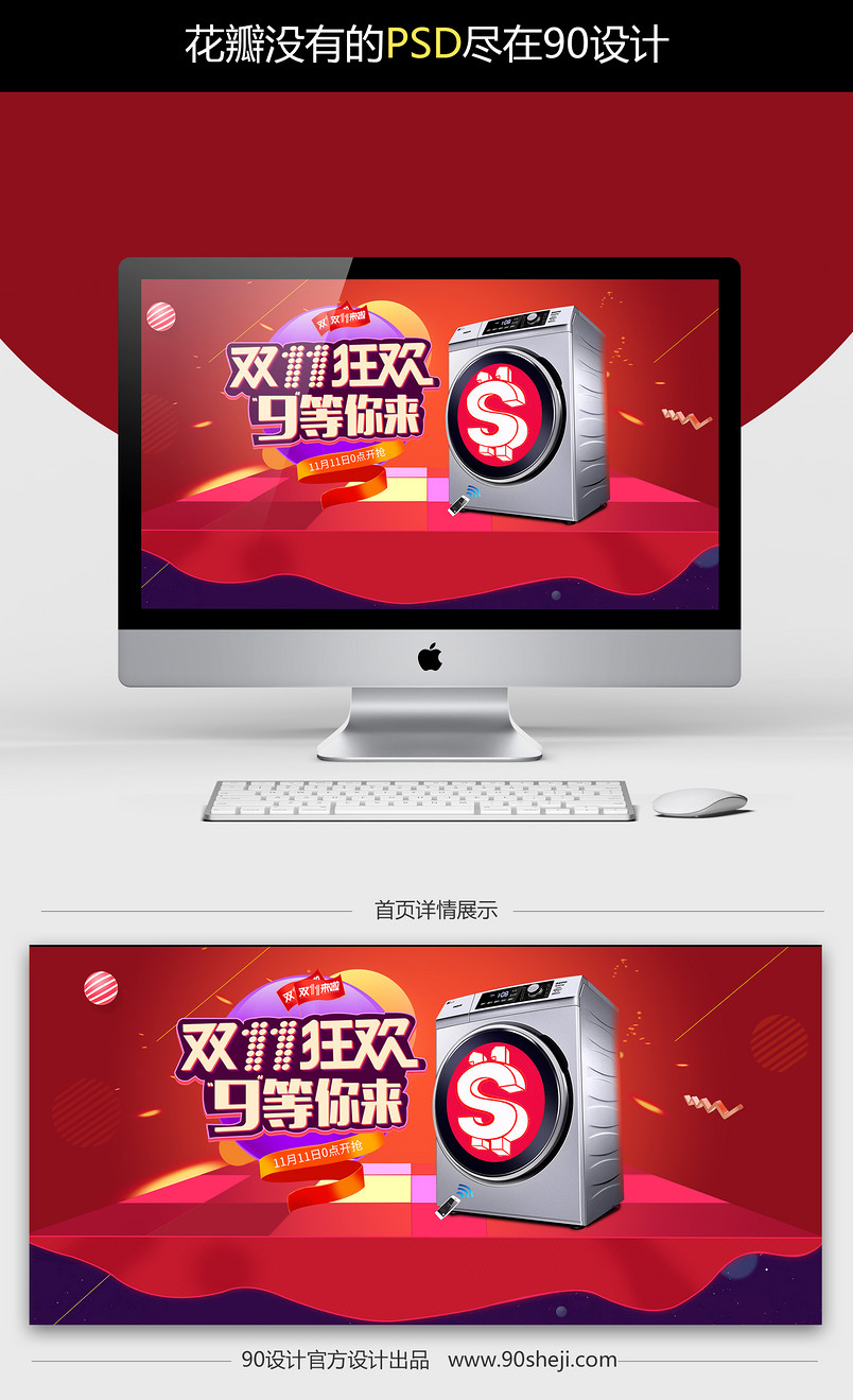 90设计提供双11狂欢大促生活电器洗衣机全屏海报模版设计素材下载,高清PSD格式。【通用】多类目可用,产品、模特均可替换。【PSD】精细分层,贴好片。【设计】由90设计师独家设计。点击右侧免费下载按钮可进行双11狂欢大促生活电器洗衣机全屏海报模版淘宝设计素材高速下载。