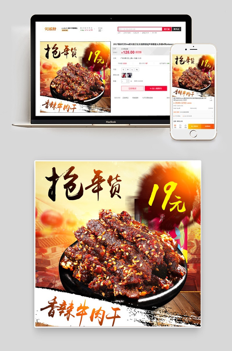 淘宝天猫年货节零食牛肉干主图模板PSD