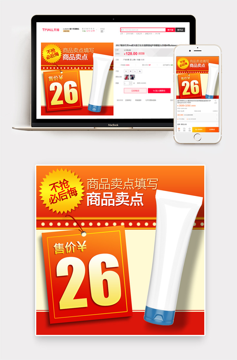 美妆 护肤品 化妆品 主图 模板 PSD 橙色 喜庆 清仓 直通车 psd