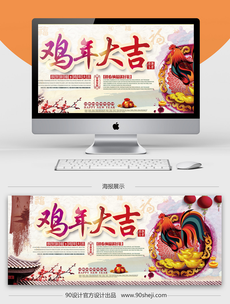 90设计提供淘宝中国风鸡年大吉海报psd模板设计素材下载,高清PSD格式。【通用】多类目可用,产品、模特均可替换。【PSD】精细分层,贴好片。【设计】由90设计师独家设计。点击右侧免费下载按钮可进行淘宝中国风鸡年大吉海报psd模板淘宝设计素材高速下载。