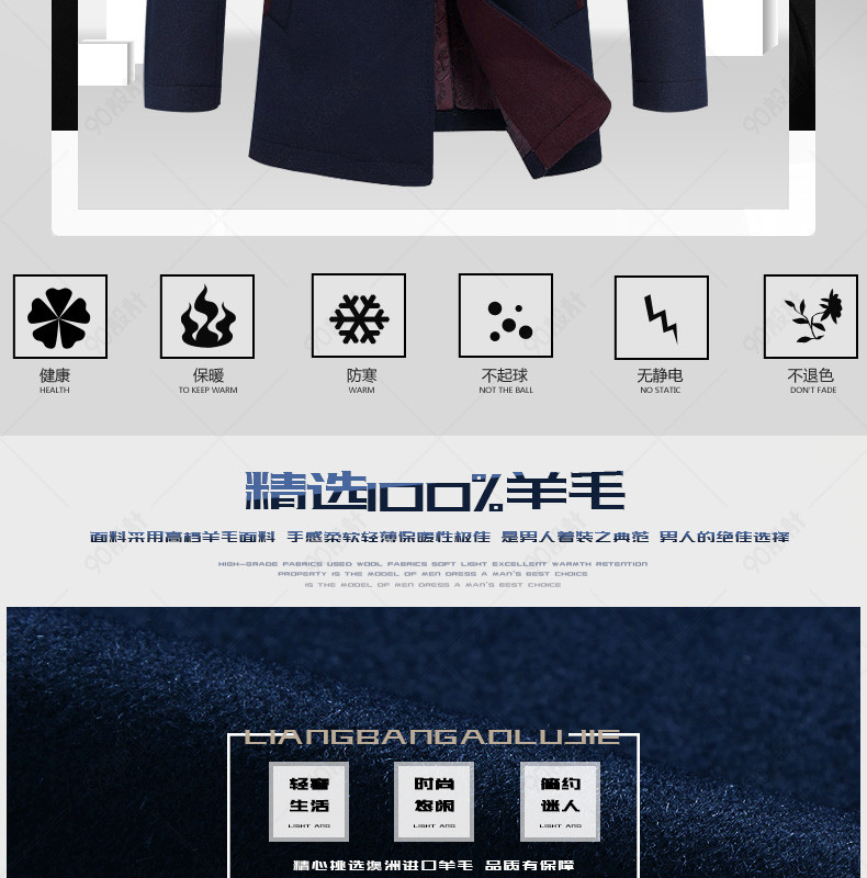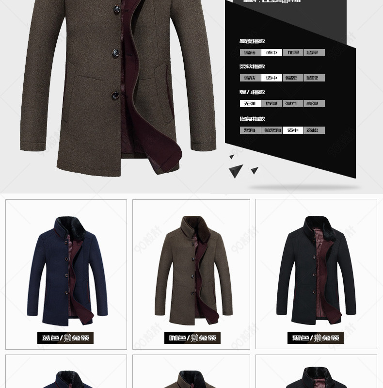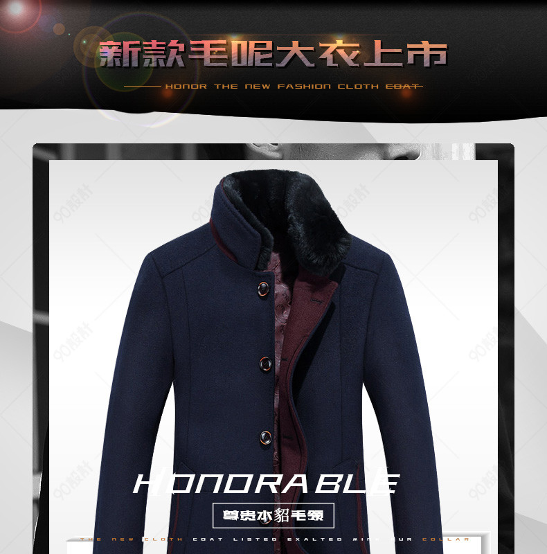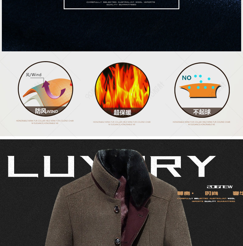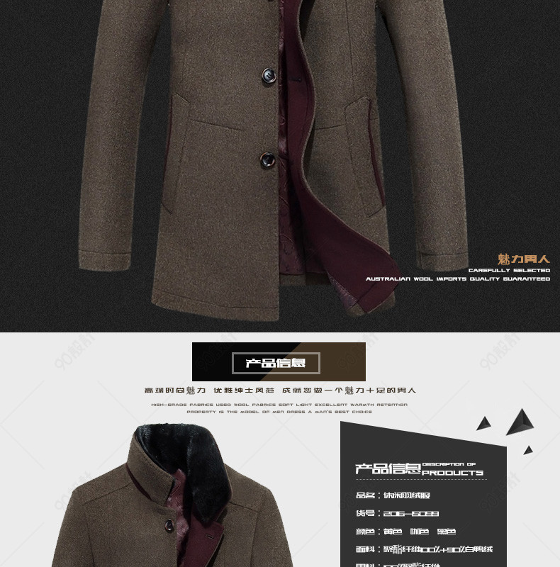 新装上新 潮流 男装详情页 毛呢大衣详情页 风衣 外套 毛领 光效 图标 羊毛 獭兔