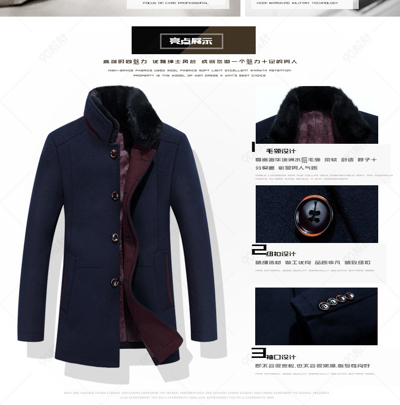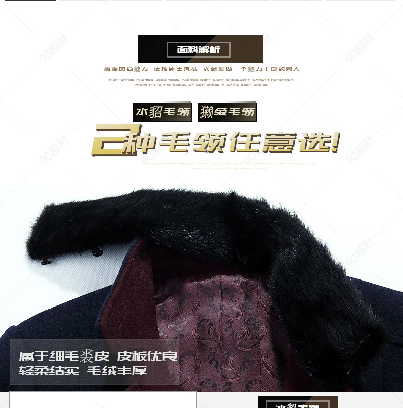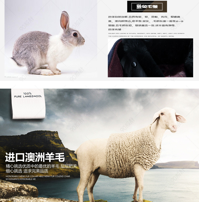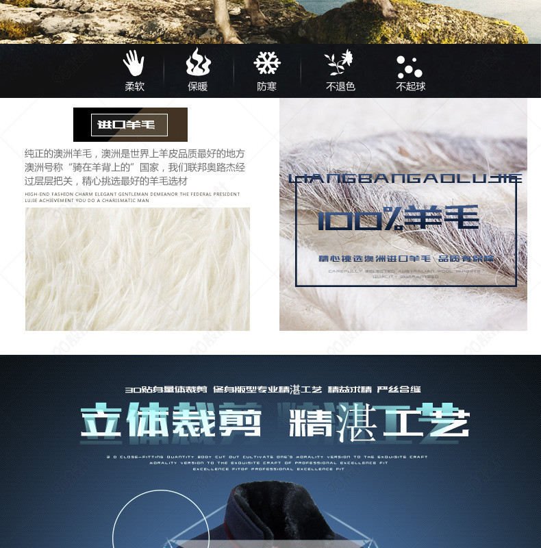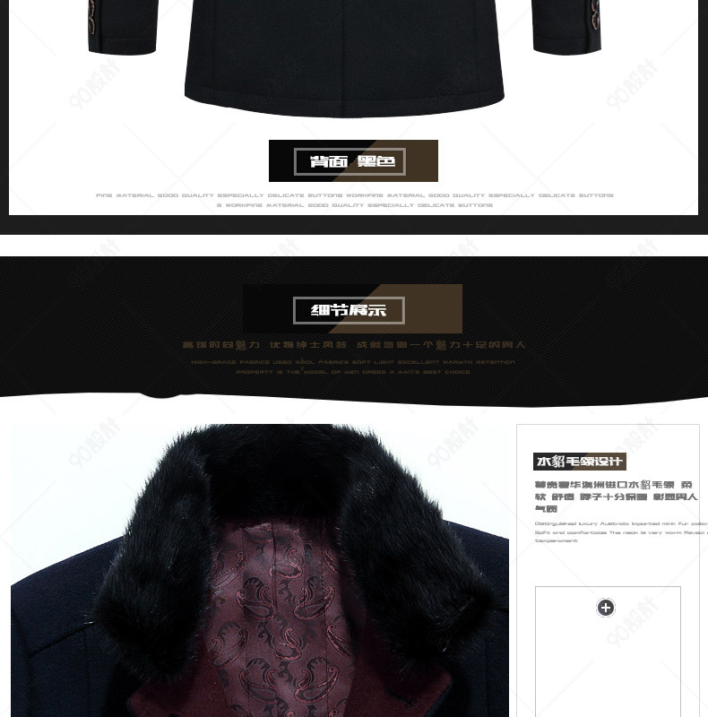 新装上新 潮流 男装详情页 毛呢大衣详情页 风衣 外套 毛领 光效 图标 羊毛 獭兔