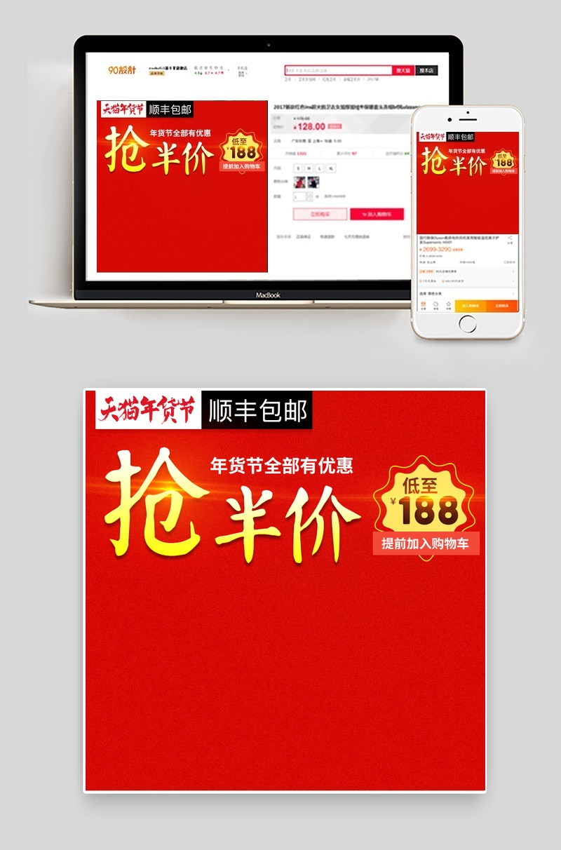 年货节 主图 直通车 psd 促销 中国风 红色 喜庆 半价 榨汁机 热水器 电视机