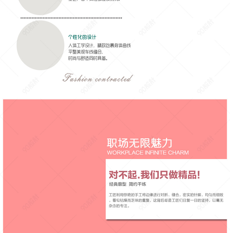 90设计提供职场女装详情页设计素材下载,高清PSD格式。【通用】多类目可用,产品、模特均可替换。【PSD】精细分层,贴好片。【设计】由90设计师独家设计。点击右侧免费下载按钮可进行职场女装详情页淘宝设计素材高速下载。