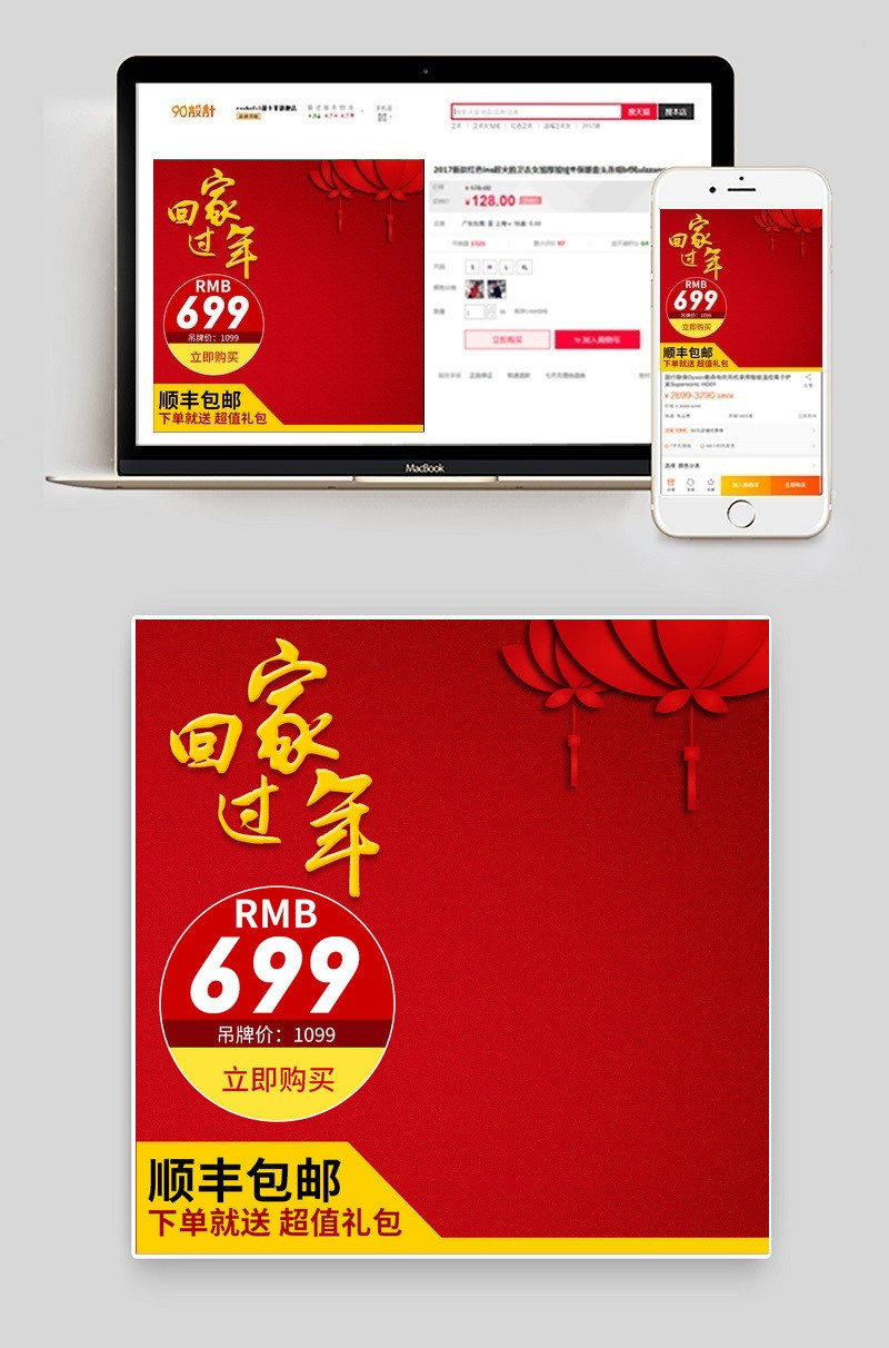 生活电器 洗衣机 电视机 冰箱 中国风 红色 祥云背景 灯笼 过年 喜庆 主图 psd模板 直通车 促销