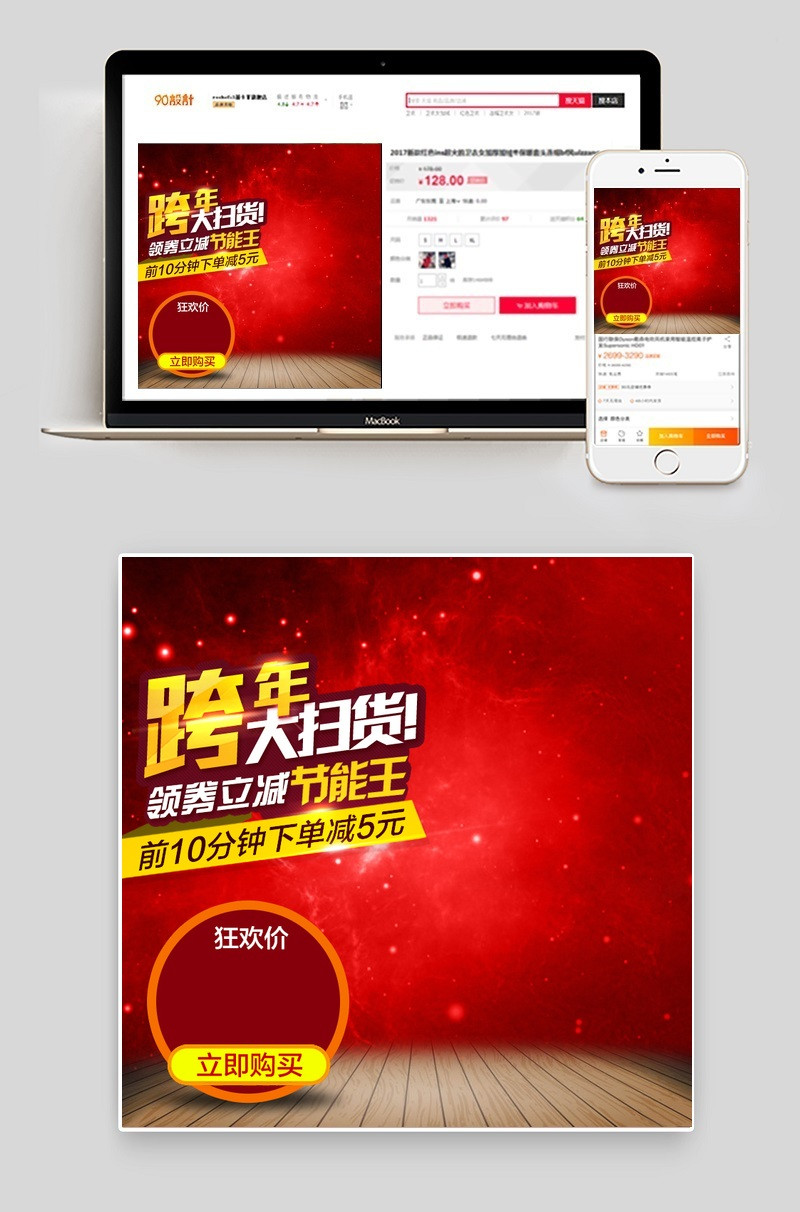 淘宝 天猫 红色 唯美风 年货节 价格标签 狂欢价 立即购买 领券立减 跨年大扫货 木板素材