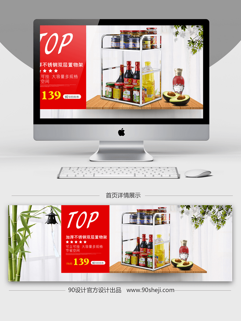 淘宝 天猫 时尚 简约 置物架 促销海报 厨房背景 厨房海报 冬季特价 清新风格 海报 psd模板 调料 调料架 你是谁