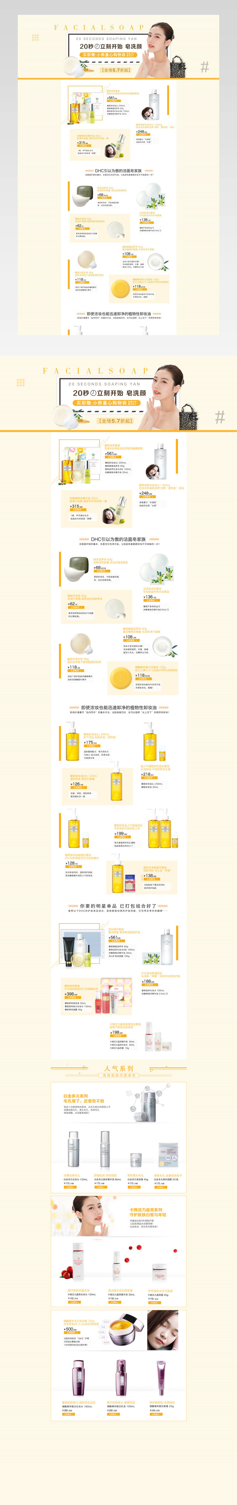 活泼 轻快 美妆首页 洁面皂首页 护肤品首页 个人护理首页模板 洁面乳 洁面膏 洗面奶 洁面啫喱 水元素