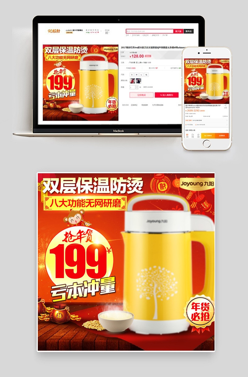 直通车 psd模板 主图 中国风 豆浆机 年货节 促销 喜庆 过年 九阳