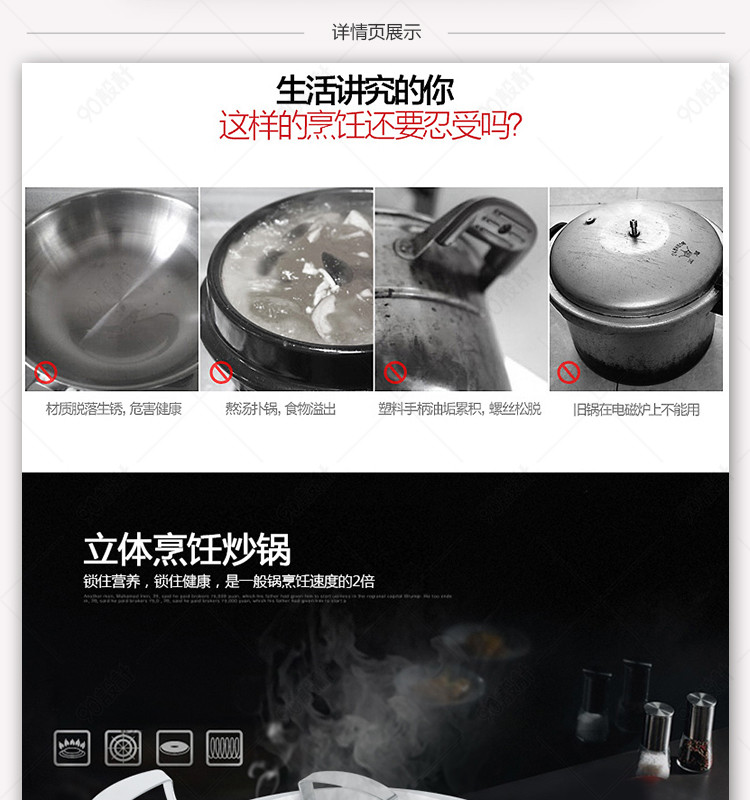 90设计提供淘宝天猫家用不锈钢汤锅淘宝详情设计素材下载,高清PSD格式。【通用】多类目可用,产品、模特均可替换。【PSD】精细分层,贴好片。【设计】由90设计师独家设计。点击右侧免费下载按钮可进行淘宝天猫家用不锈钢汤锅淘宝详情淘宝设计素材高速下载。