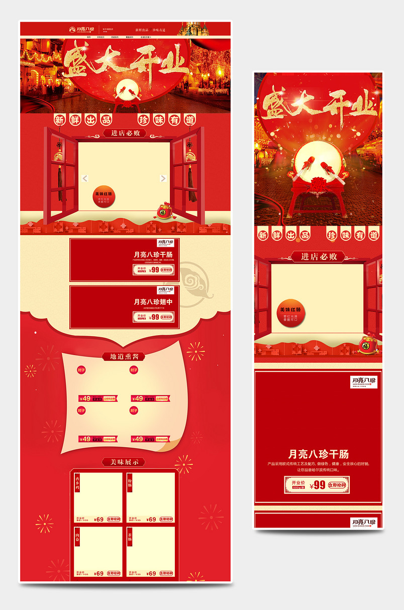 熟食首页 干肠首页 食品首页 美食 干肠 腊肠 烧鸡 熟食 开业 红色 烟花 金色字体 全屏首页 1920