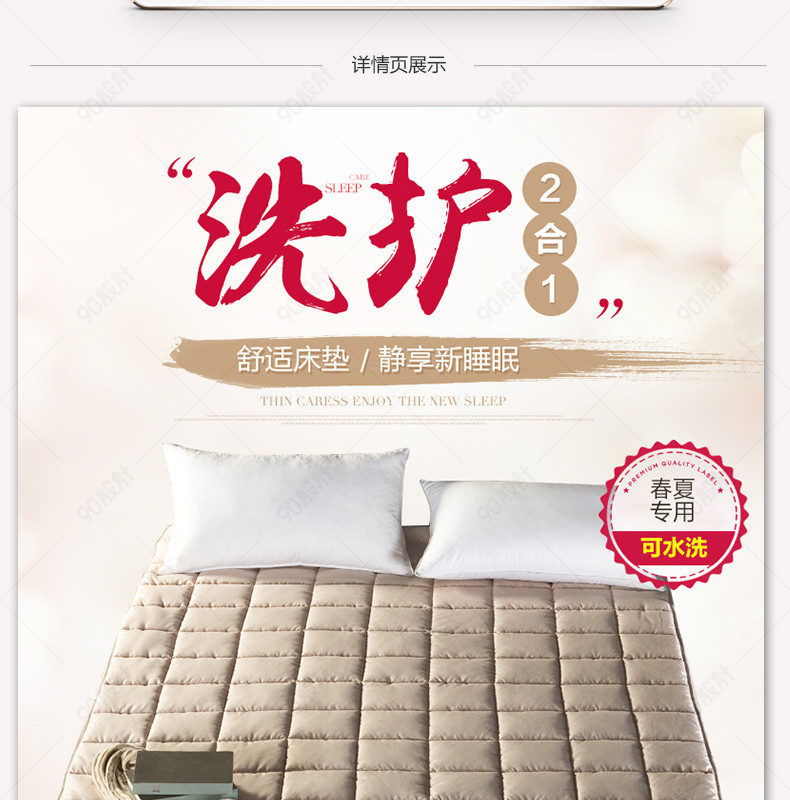 简约温馨淘宝天猫家居家纺床垫床单详情页psd