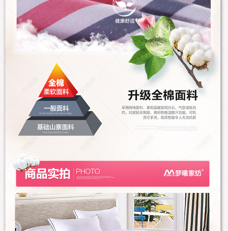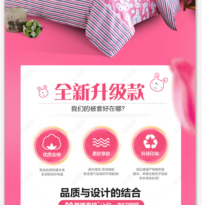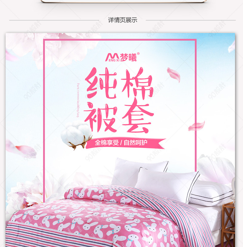 四件套详情页 家纺详情页 被单 床单详情页 舒适 结实 好看 粉色 白色