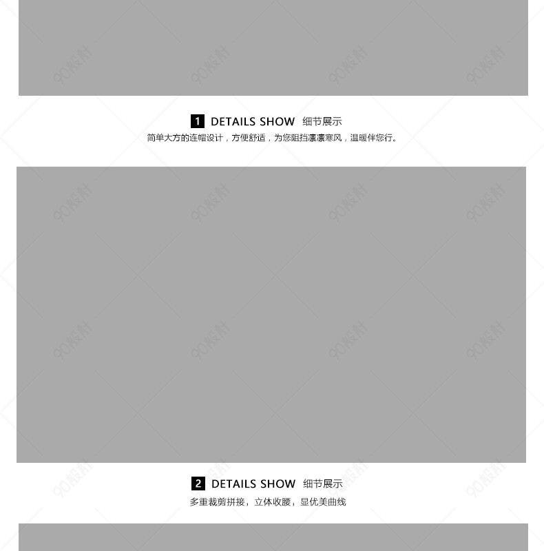 90设计提供暖冬连帽羽绒服详情页装修设计素材下载,高清PSD格式。【通用】多类目可用,产品、模特均可替换。【PSD】精细分层,贴好片。【设计】由90设计师独家设计。点击右侧免费下载按钮可进行暖冬连帽羽绒服详情页装修淘宝设计素材高速下载。