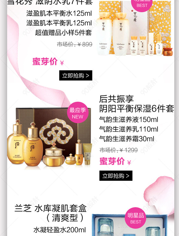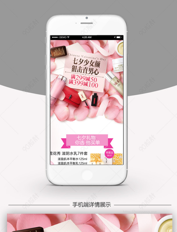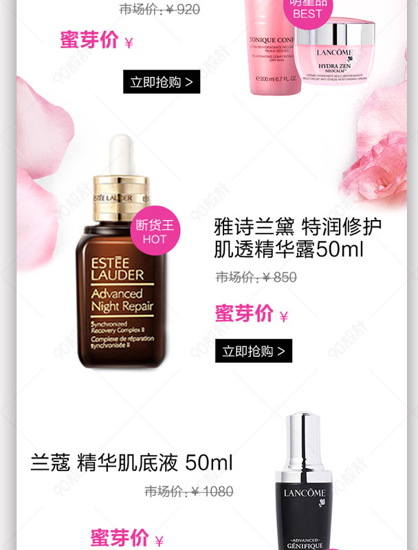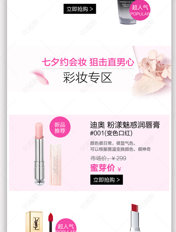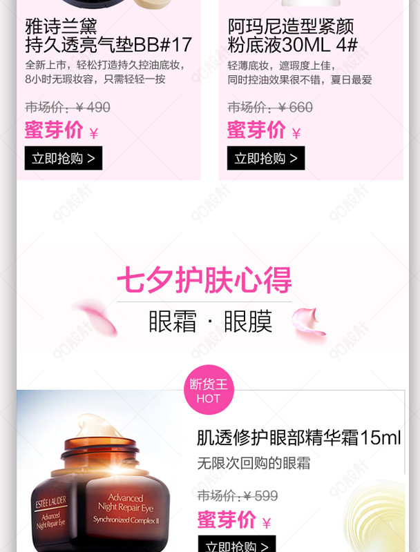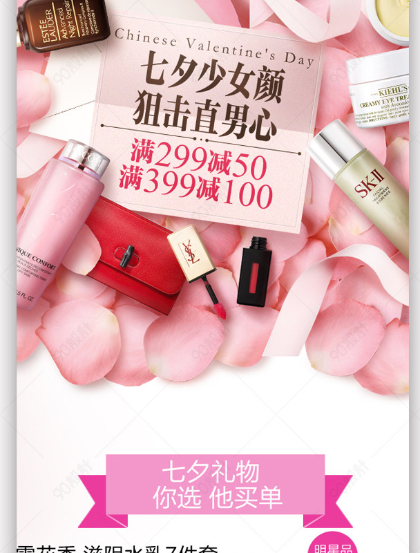 粉色 浪漫 甜美风 花瓣 丝带 美妆 护肤品 化妆品 口红 粉底液 眼线 隔离霜 粉底液 无线端首页 模板 PSD