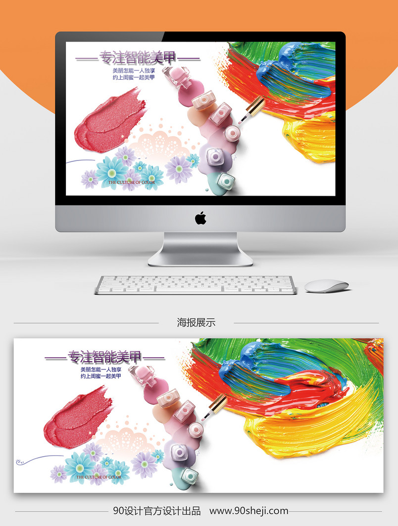 彩妆 美甲 指甲油 油画元素 智能美甲 花朵元素 绚丽 美甲工具 全屏海报PSD On y!