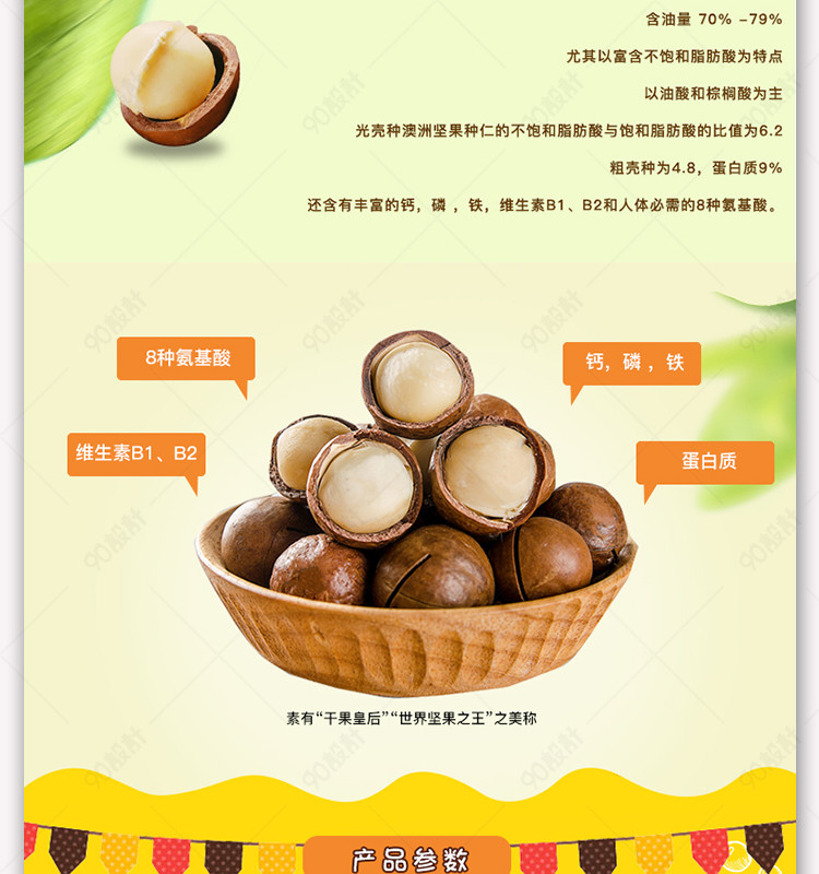 90设计提供甜美可爱风夏威夷果详情页PSD模版设计素材下载,高清PSD格式。【通用】多类目可用,产品、模特均可替换。【PSD】精细分层,贴好片。【设计】由90设计师独家设计。点击右侧免费下载按钮可进行甜美可爱风夏威夷果详情页PSD模版淘宝设计素材高速下载。