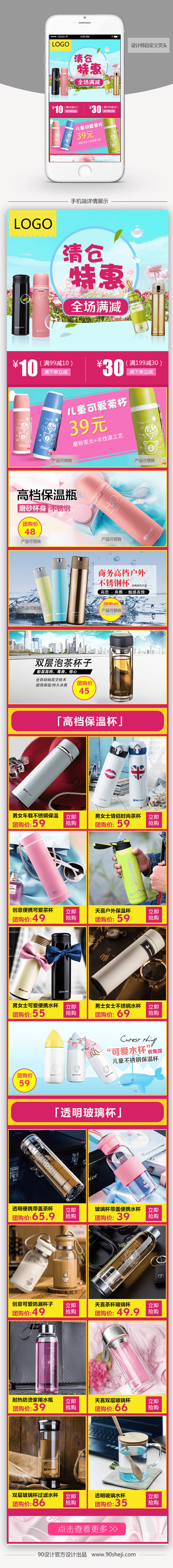 清新风保温杯手机端首页PSD