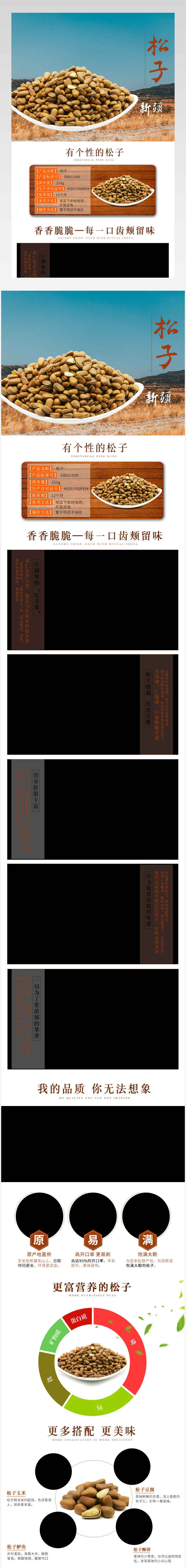 90设计提供淘宝天猫零食坚果松子时尚简约详情页设计素材下载,高清PSD格式。【通用】多类目可用,产品、模特均可替换。【PSD】精细分层,贴好片。【设计】由90设计师独家设计。点击右侧免费下载按钮可进行淘宝天猫零食坚果松子时尚简约详情页淘宝设计素材高速下载。