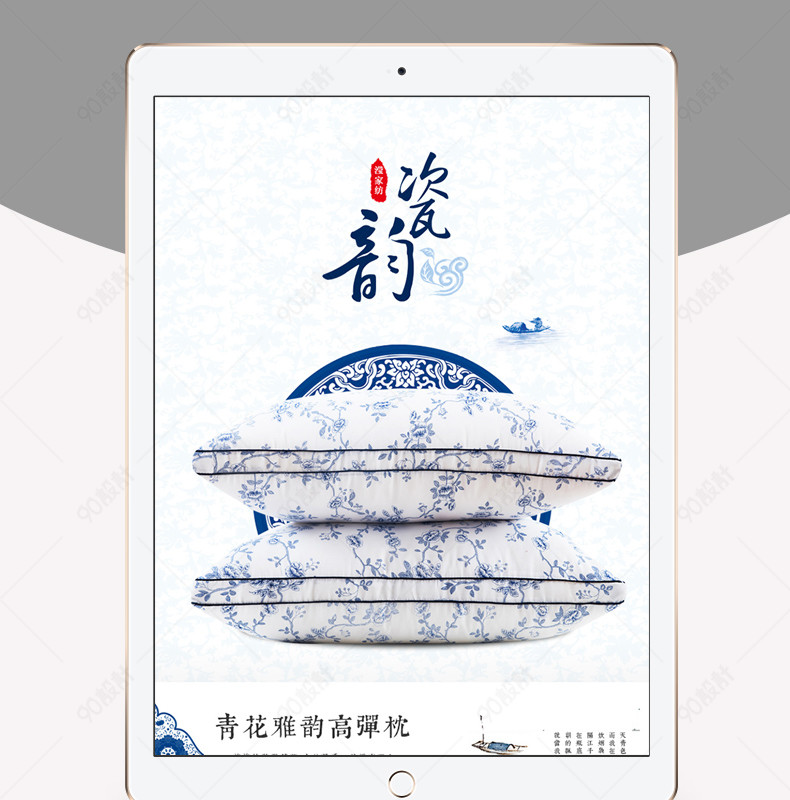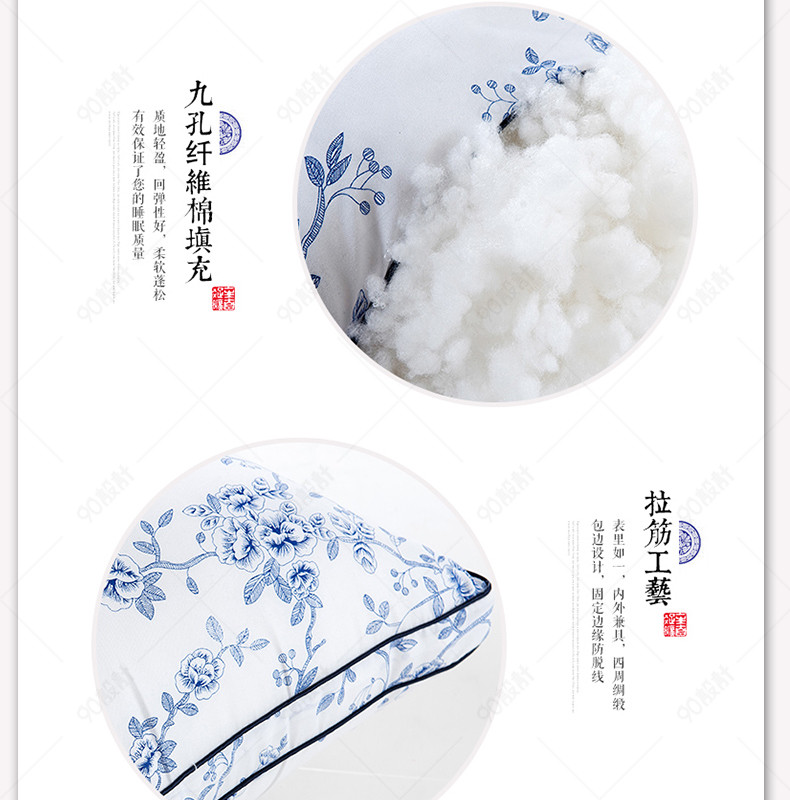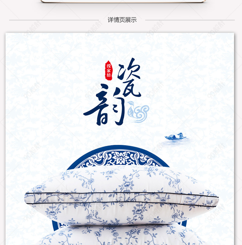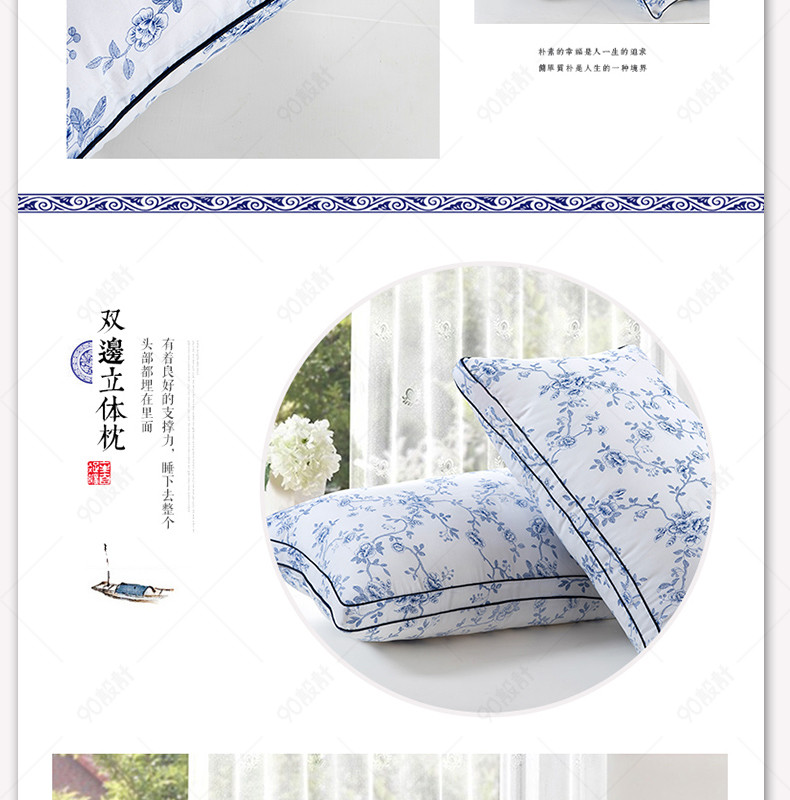 唯美淘宝天猫青花瓷枕芯枕头详情页psd