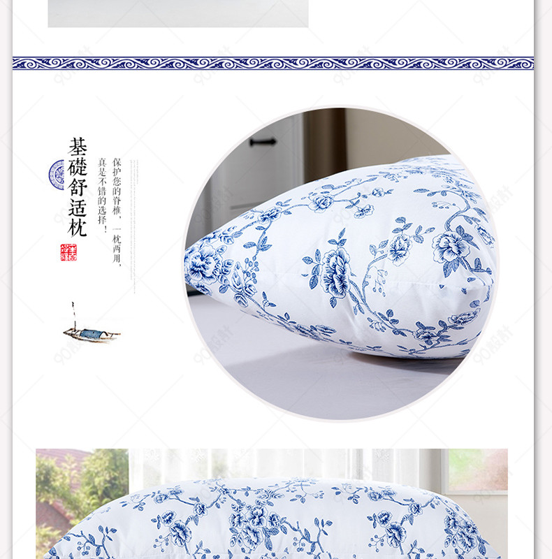 枕头详情页 枕芯详情页 四件套详情页 家居 家纺 睡眠枕 健康枕 酒店枕 羽绒枕 纺织品详情页 床上用品详情 青花瓷 中国风 唯美 古风 Loser