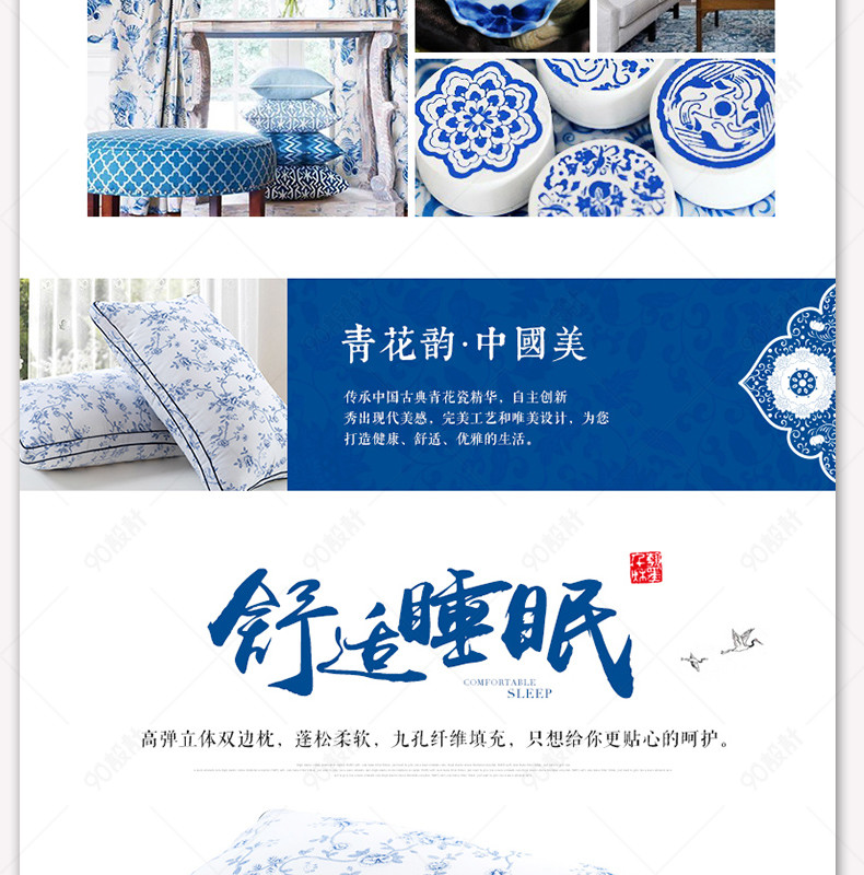 90设计提供唯美淘宝天猫青花瓷枕芯枕头详情页psd设计素材下载,高清PSD格式。【通用】多类目可用,产品、模特均可替换。【PSD】精细分层,贴好片。【设计】由90设计师独家设计。点击右侧免费下载按钮可进行唯美淘宝天猫青花瓷枕芯枕头详情页psd淘宝设计素材高速下载。