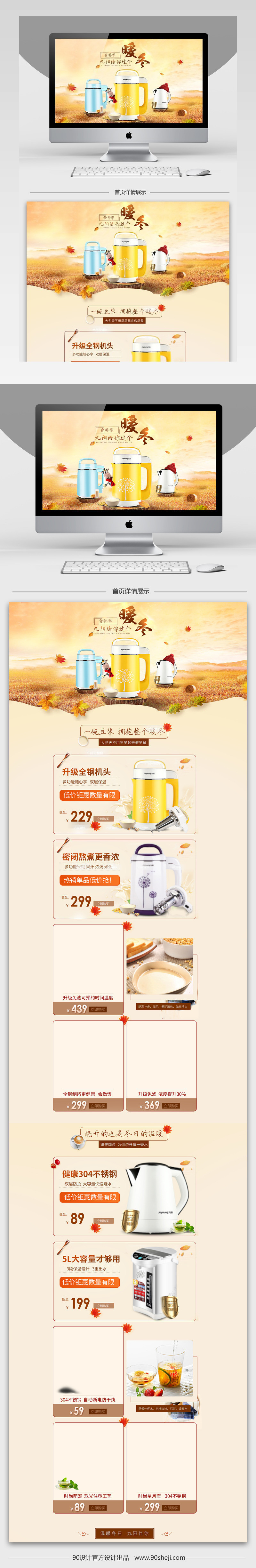 暖冬金色主题首页专题页psd 暖冬首页 家电首页 豆浆机首页 热水壶 暖手宝 料理机 榨汁机 枫叶 温馨 自然风 合成风
