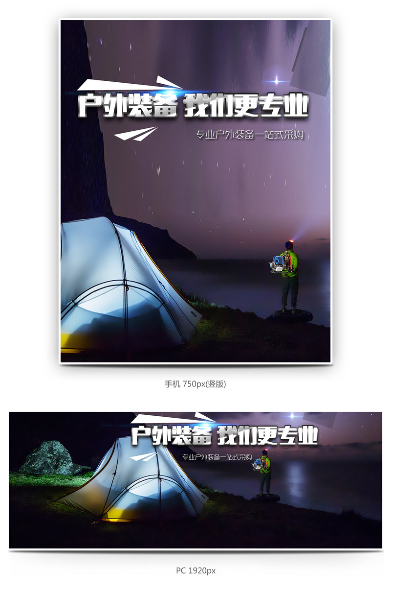 全屏海报 banner 海报 户外运动 露营装备 简约风 欧美风 帐篷 睡袋 露营灯