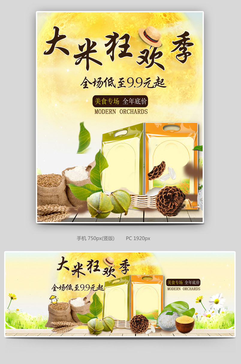 大米店铺全屏海报PSD 大米狂欢季 On y!