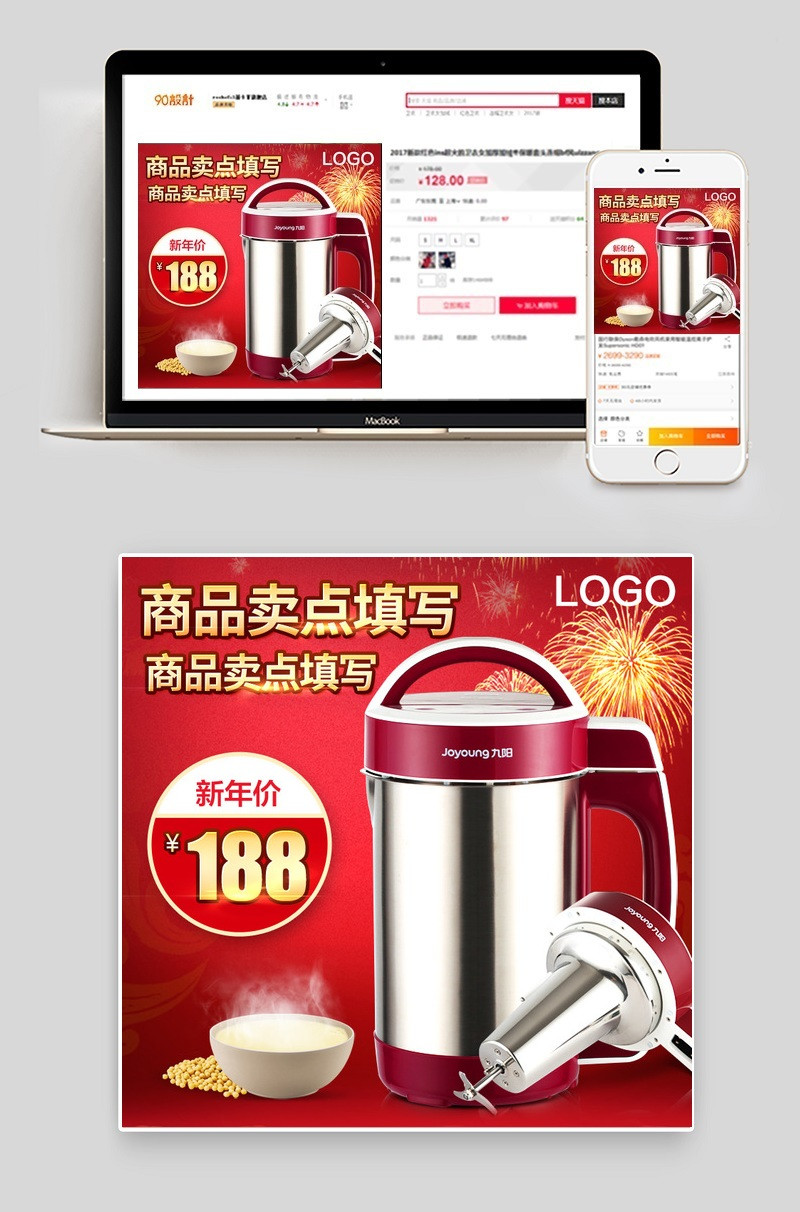 天猫淘宝数码家电榨汁机主图 psd模板 榨汁机主图 豆浆机主图 九阳主图 豆浆机主图 电饭煲 电磁炉 料理机 淘宝主图 红色背景主图