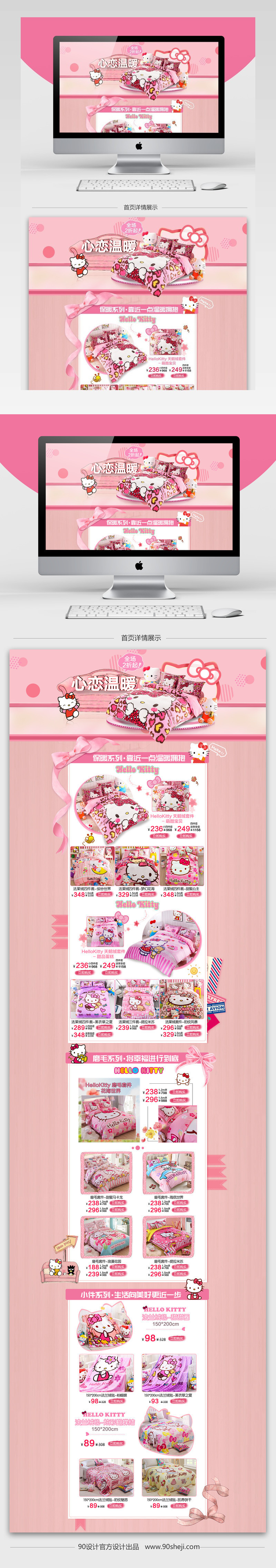 PC端首页 店铺首页 首页装修 家纺家饰 唯美风 甜美风 可爱风 少女心 粉色背景 床上用品 枕头 被子