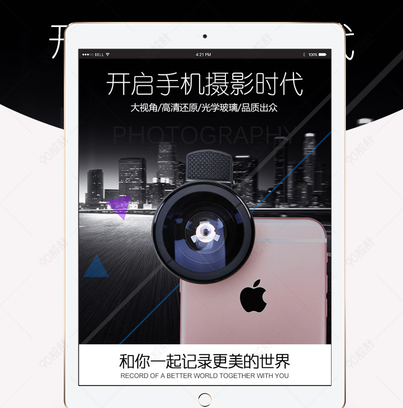 天猫天猫黑色海报广角镜头详情页PSD文件