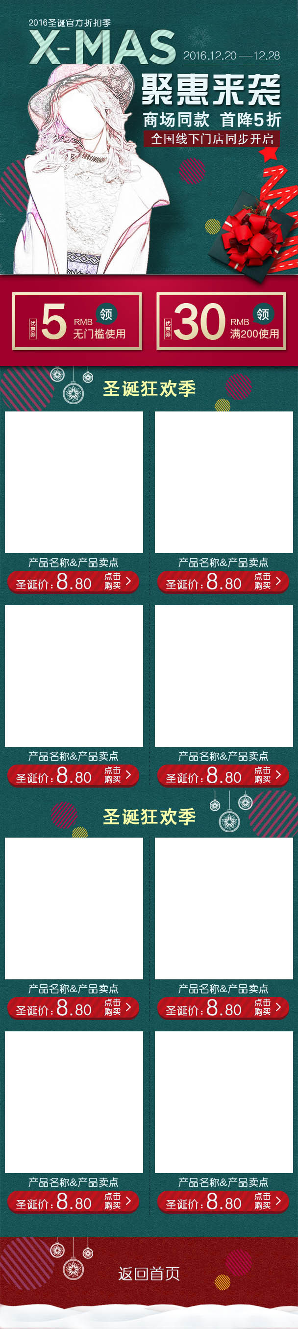 90设计提供圣诞元旦女装手机页面分层设计素材下载,高清PSD格式。【通用】多类目可用,产品、模特均可替换。【PSD】精细分层,贴好片。【设计】由90设计师独家设计。点击右侧免费下载按钮可进行圣诞元旦女装手机页面分层淘宝设计素材高速下载。